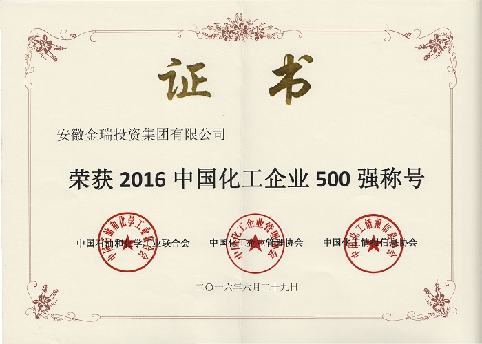 由中國石油和化學(xué)工業(yè)聯(lián)合會、中國化工企業(yè)管理協(xié)會、中國化工情報(bào)信息協(xié)會聯(lián)合發(fā)布2016中國化工企業(yè)500強(qiáng)排行榜,安徽金瑞投資集團(tuán)有限公司,位列第309位,同時(shí),安徽金禾實(shí)業(yè)股份有限公司2016化工百強(qiáng)上市公司排行榜中排序75位,中國肥料制造業(yè)百強(qiáng)企業(yè)排序第60位,分別比2014晉升九位和兩位。