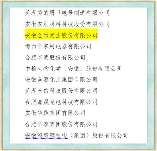 金禾實業(yè)入選2018年度安徽省制造業(yè)綜合實力50強企業(yè)