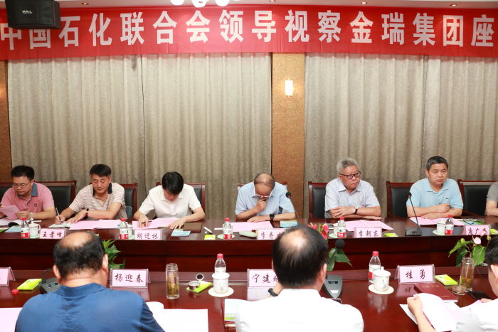 在李壽生會(huì)長(zhǎng)講話前,股份公司總經(jīng)理夏家信代表公司,向考察組一行匯報(bào)了金瑞集團(tuán)公司發(fā)展歷程、企業(yè)概況、2016年及2017年1-6月份生產(chǎn)經(jīng)營(yíng)情況及下一步打算。董事長(zhǎng)楊迎春結(jié)合具有公司自身特色的循環(huán)經(jīng)濟(jì)發(fā)展模式和企業(yè)產(chǎn)業(yè)結(jié)構(gòu)調(diào)整、轉(zhuǎn)型升級(jí)發(fā)展情況作了闡述。中國(guó)石油和化學(xué)工業(yè)聯(lián)合會(huì)副秘書長(zhǎng)兼科技部主任胡遷林、副秘書長(zhǎng)兼國(guó)際部主任龐廣廉,就科技成果鑒定、科技創(chuàng)新獎(jiǎng)勵(lì)、研發(fā)平臺(tái)認(rèn)定、申報(bào)國(guó)家級(jí)研發(fā)中心及國(guó)際組織合作等作了發(fā)言。